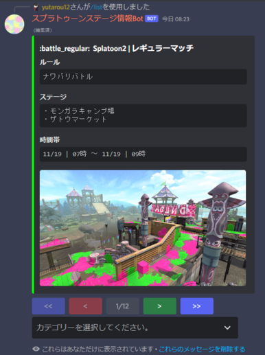 スプラトゥーンステージ情報Botのコマンドリストです。